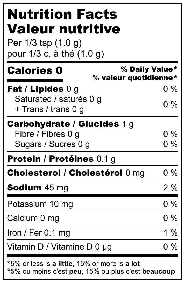 Ail, Paprika, Sel de mer (12 %), Tomate, Coriandre, Poivre blanc, Carvi, Piment d'Alep, Gingembre, Arôme naturel, Origan, Clous de girofle, Noix de muscade, Cardamome.