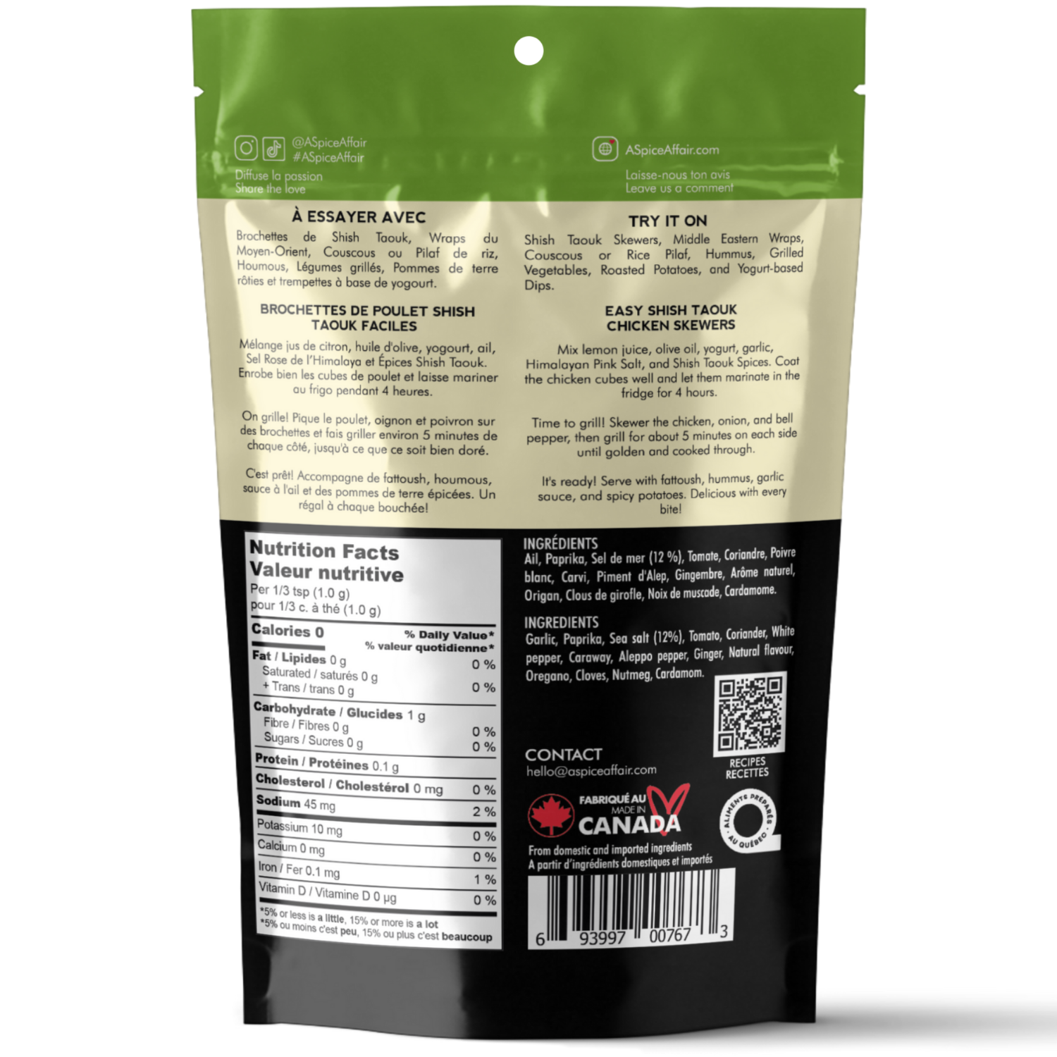 Je suis le mélange parfait d'épices, apportant les saveurs vibrantes du Moyen-Orient à vos plats de Shish Taouk!